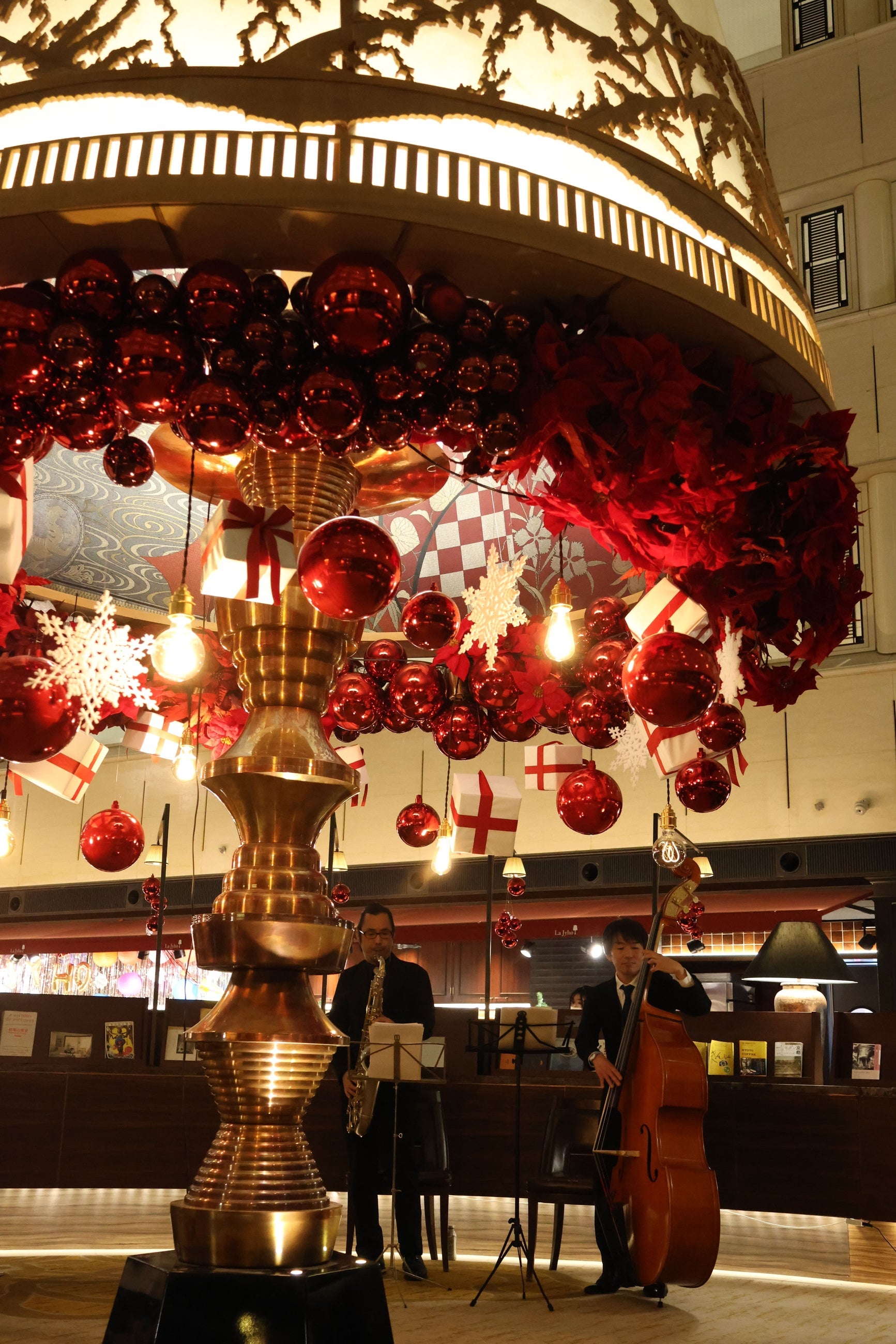 期間中は、ホテル2階のロビー中央に佇む全長およそ4.8mのフロアスタンド、「かんじんの京灯り」をクリスマス仕様にデコレーションし、ノスタルジックモダンな空間に灯るやわらかな輝きがゲストの皆様を包み込みます。ご宿泊のお客さまはもちろん、館内の施設をご利用の皆様どなたでもお楽しみいただける空間です。心躍るフェスティブシーズンのひとときをぜひ、「かんじんの京灯り」のもとでお過ごしください。