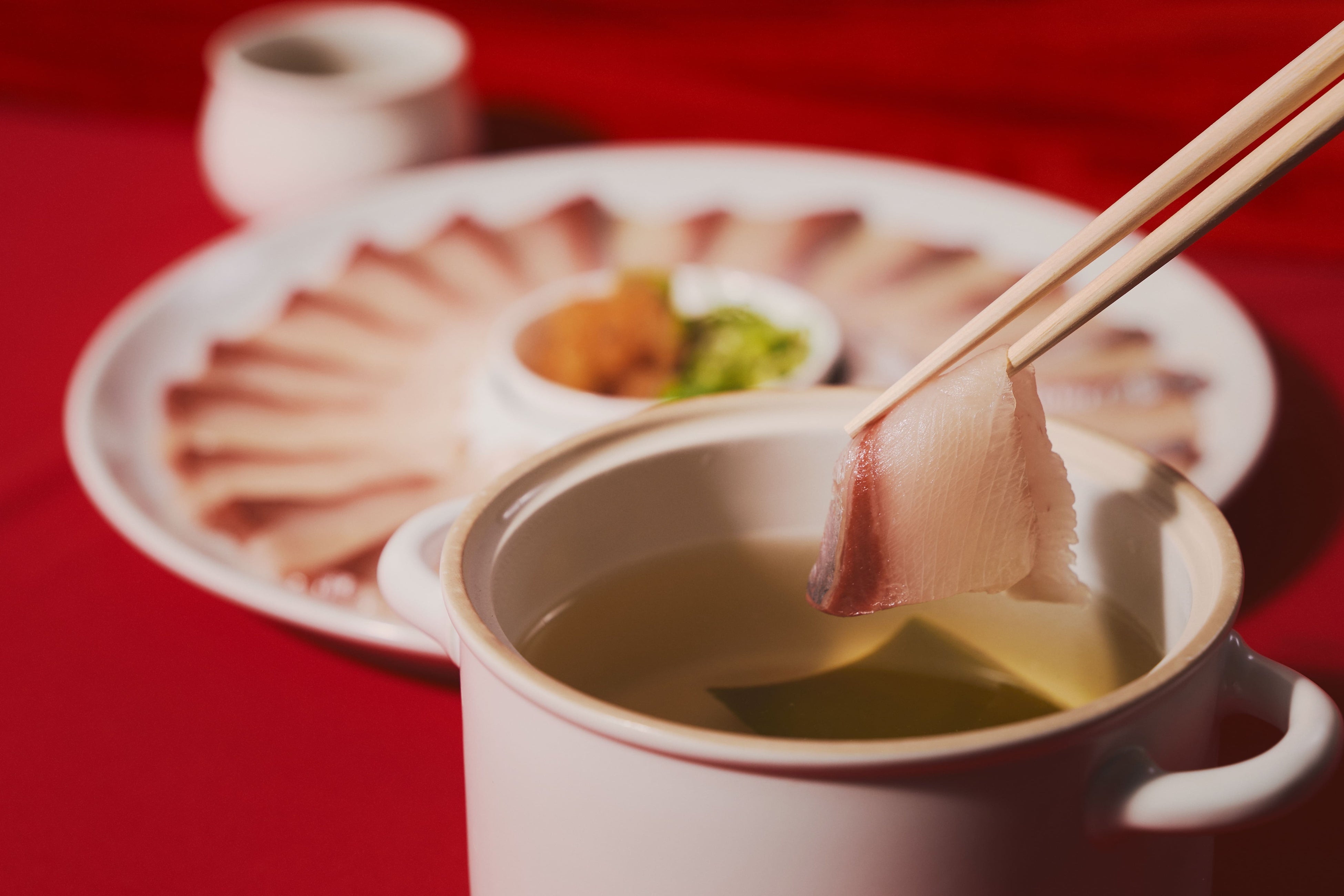 冬の訪れとともに旬を迎える鰤。昆布と鰹でとった香り高い黄金色のだしにさっと身をくぐらせれば、余分な脂が落ち、鰤本来の上品な甘みと旨味が凝縮されます。