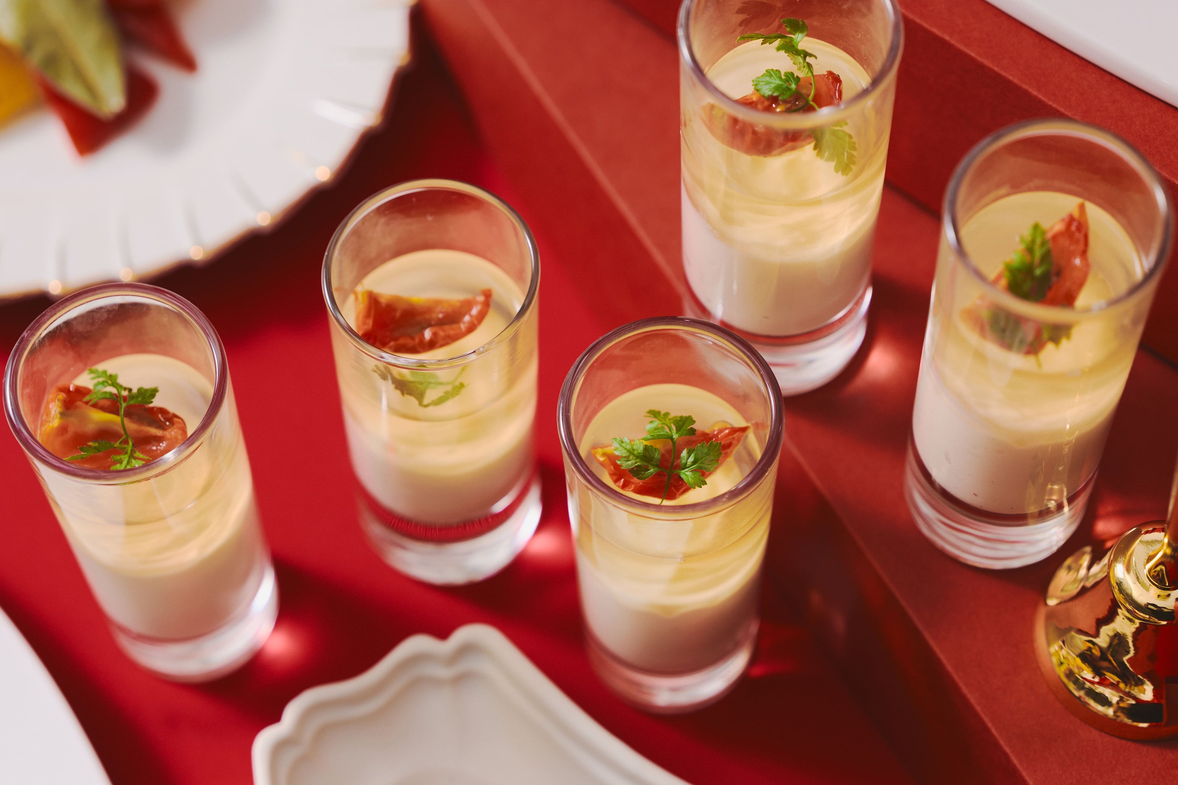 本フェアでは、冬の味覚を楽しむバラエティ豊かなメニューを取り揃えました。「ポークコンフィとカポナータ」、「ドライフルーツたっぷりのパテ・ド・カンパーニュ」などの冷製料理に始まり、定番の「ローストチキン」や「ボンゴレビアンコ」、「国産牛のローストビーフ」(ディナー限定)といったホット料理も充実のラインアップです。また、みずみずしいサラダや多彩なスイーツ、15種類以上のアイスクリームもご用意し、大切な方と過ごす温もりあふれるひとときを豊かに演出します。