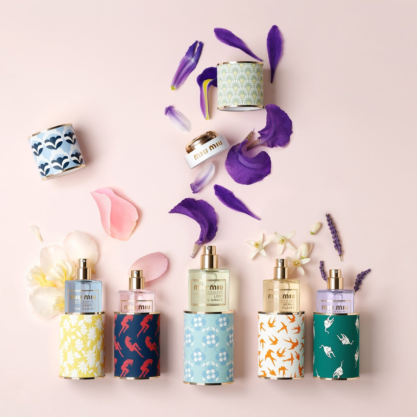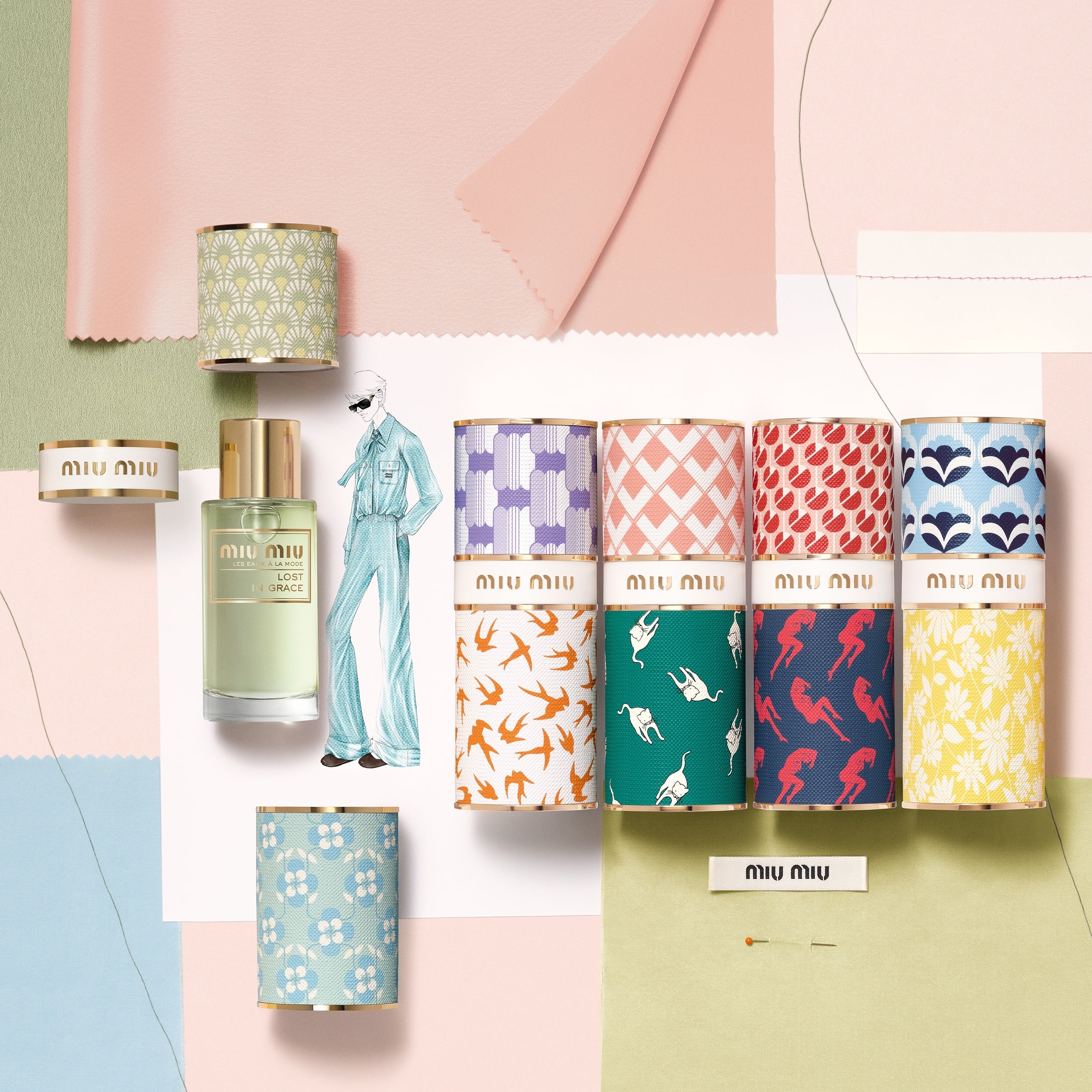 2024年1月10日(水)「ファッションアクセサリーのように香りを着せ替えよう!」をコンセプトにしたミュウミュウのフレグランスコレクション「レ ゾー アラモード」に新作が加わりました。"おめかし“をテーマにアイリスを中心とした新作フレグランス「ロストイングレース オードトワレ」に加えて、ブランドのコレクションに登場したモチーフをトップ・ボトムケースに採用。全5種類の香り、5種類のトップケース、5種類のボトムケースを、気分や服装に合わせて、まるでファッションアクセサリーのように自由に組合わせができるコレクションです。
