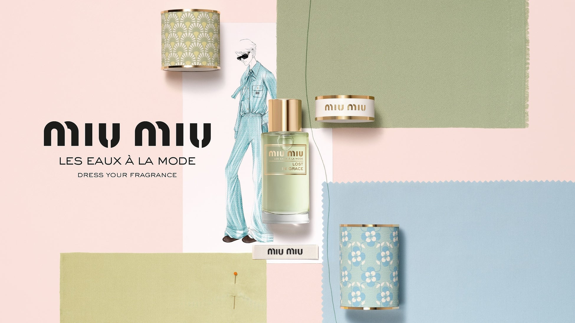 ミュウミュウのファッションとフレグランスはどちらも対照的なアイデアや質感、色彩の合わせを好んで表現しています。