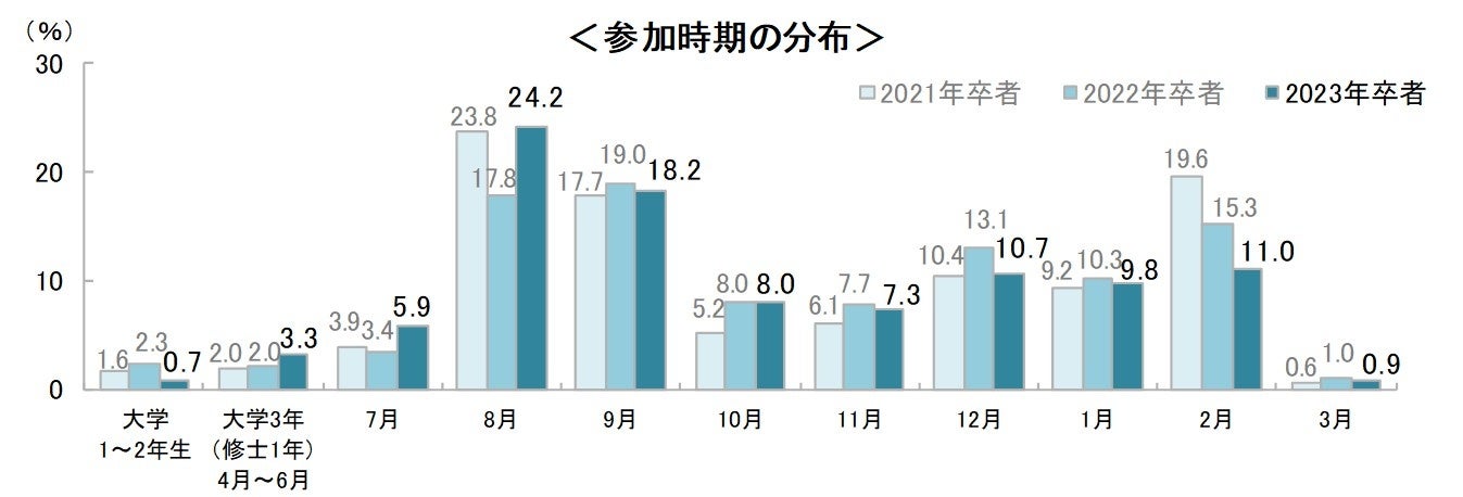図表2. 参加したインターンシップの内容(参加時期の分布)