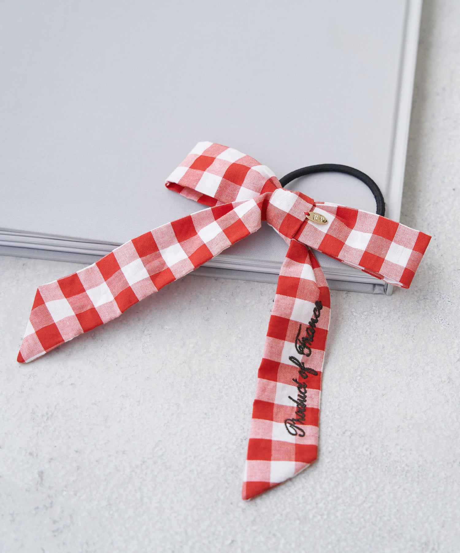 刺しゅう入りのリボンヘアゴムはポニーテールアレンジにぴったり!お子さまが使ってもかわいい。