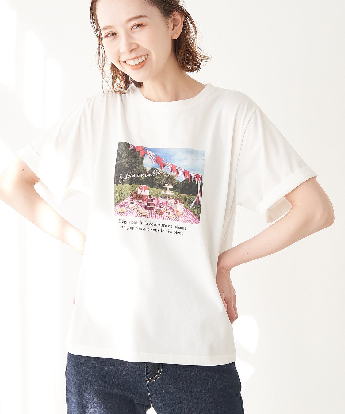 ロペピクニックオリジナルフォトを使用したTシャツ。裏面は再生ポリエステル素材なのでさらっと着ることができ、これからの季節にぴったり。