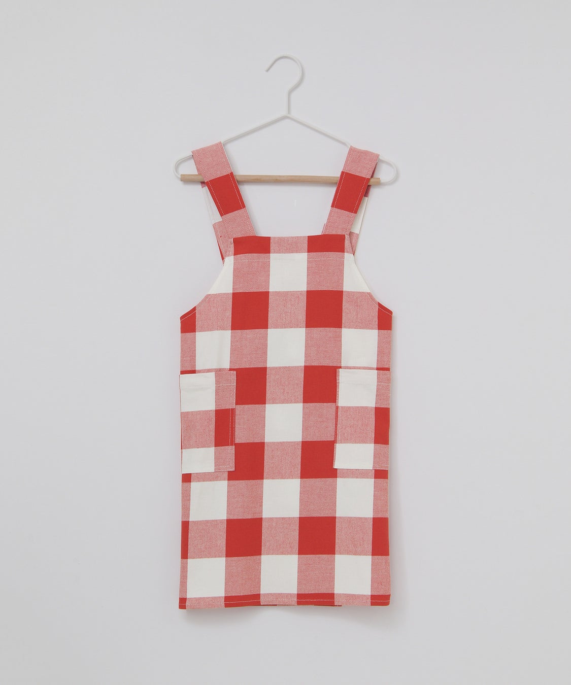 インパクトのあるチェック柄エプロン。お料理の時間がわくわくしそう。