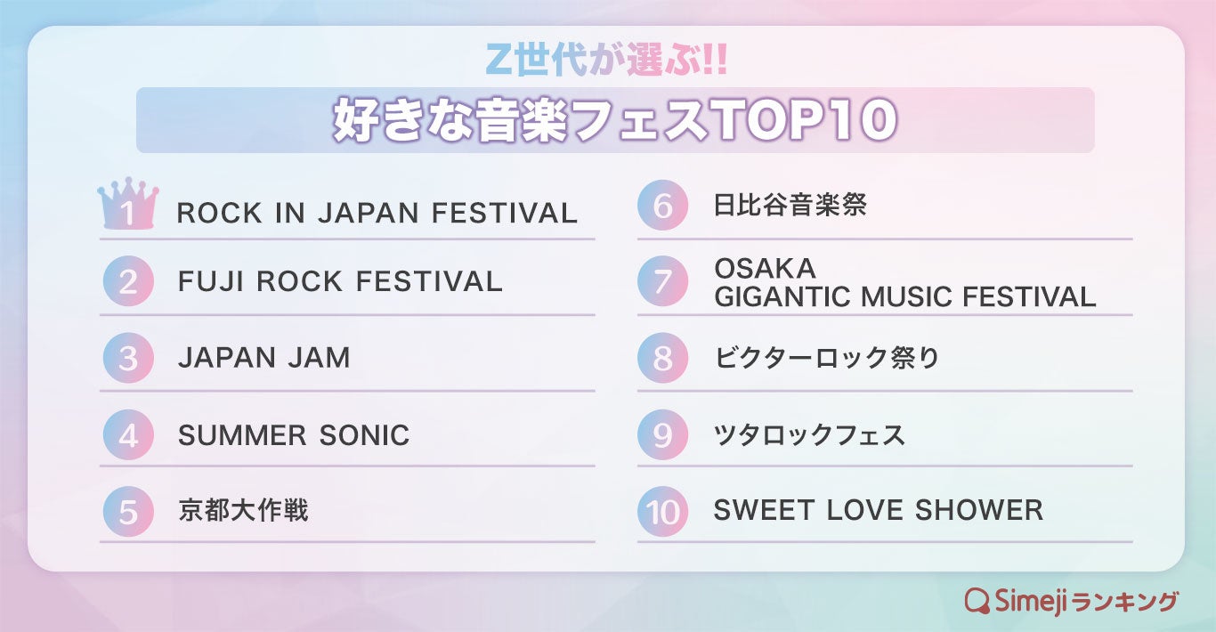 【Simejiランキング】Z世代が選ぶ!!「好きな音楽フェスTOP10」