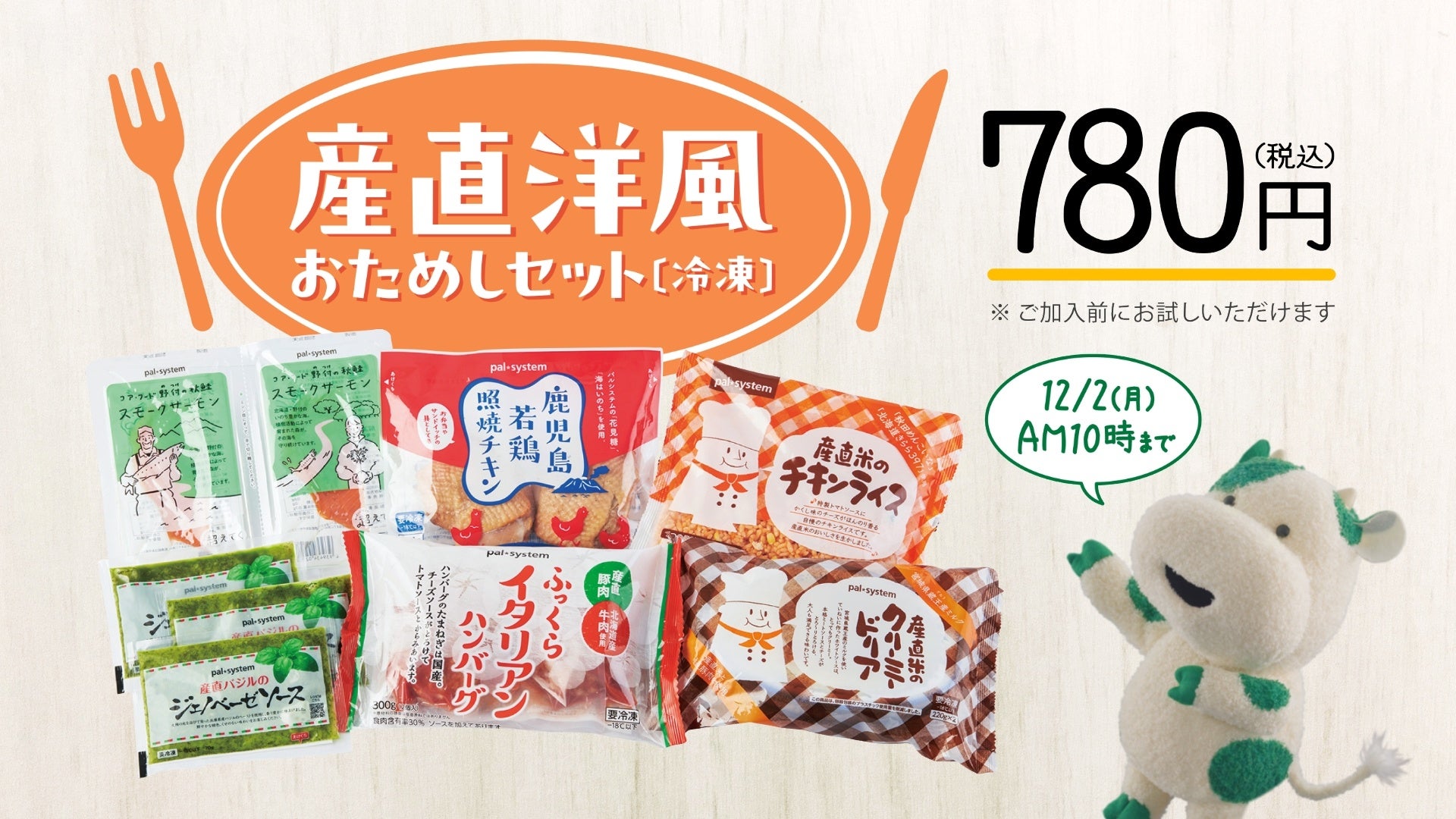 「おためしセット」は、商品の味や使い勝手を試したい人が加入前に通常価格より割安で購入できます。同セットに「産直洋風おためしセット」が新登場しました。CMで紹介している「コア・フード野付の秋鮭スモークサーモン」のほか、「ふっくらイタリアンハンバーグ」など、産直原料を使用した、簡単調理ができる洋風6商品がセットで780円(税込)です。