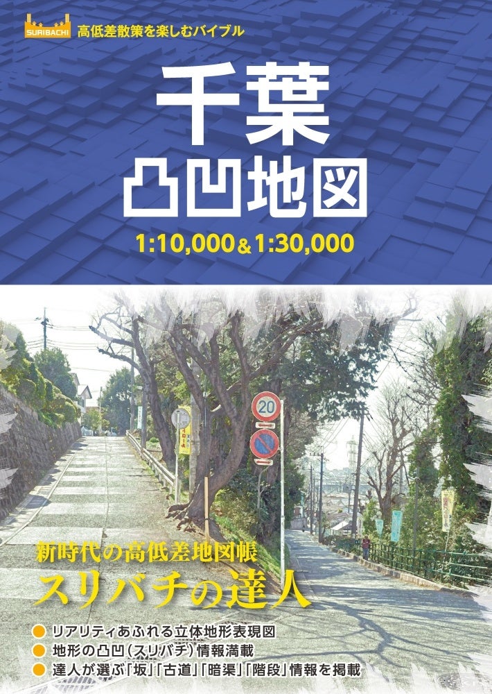 一方、千葉県北部を中心とした地域は、丘陵地、台地、低地が入り組んだ複雑な地形をなしており、スリバチ地形の宝庫ともいえます。『凸凹地図』はこうした地形の機微をあますところなく満喫できる画期的な地図帳です。