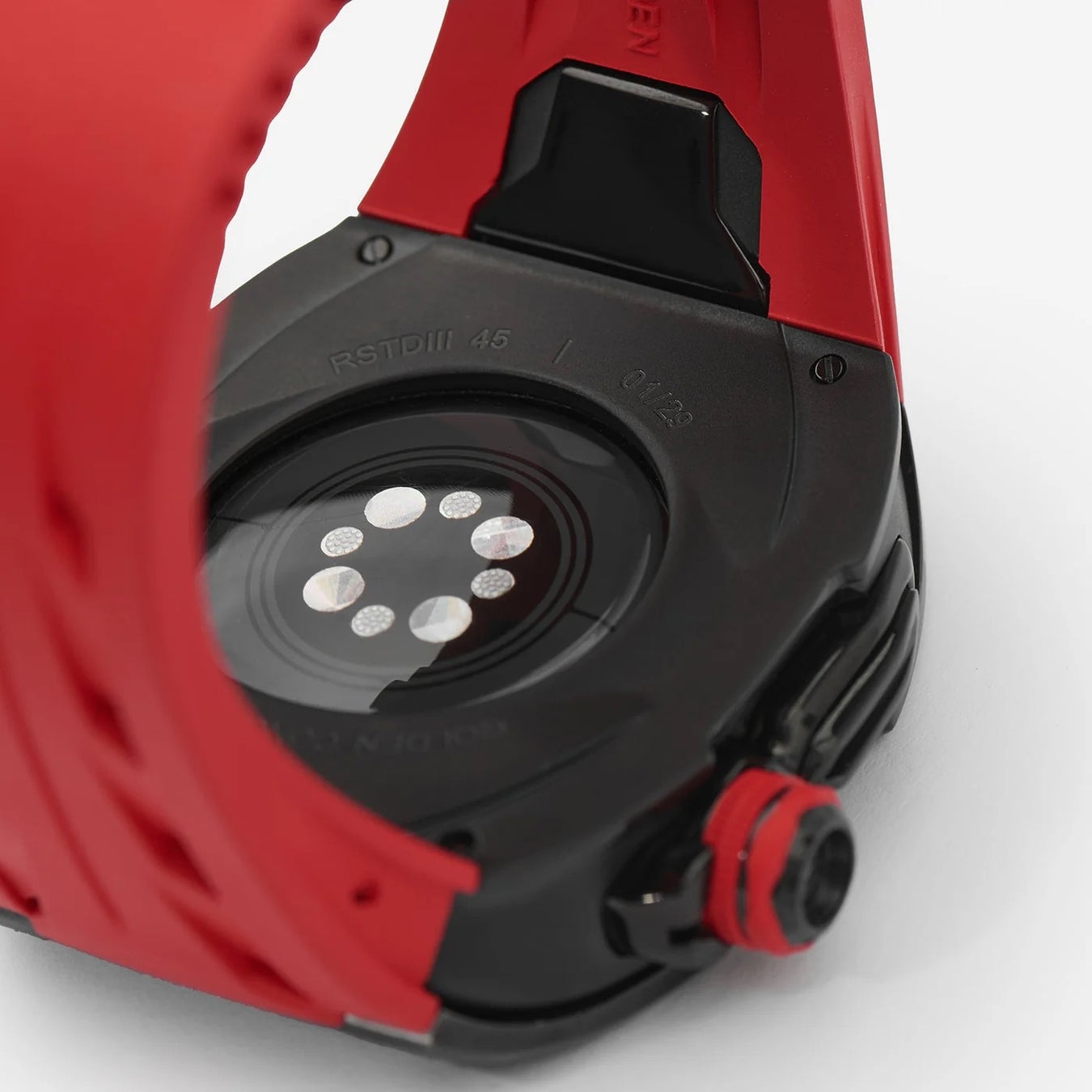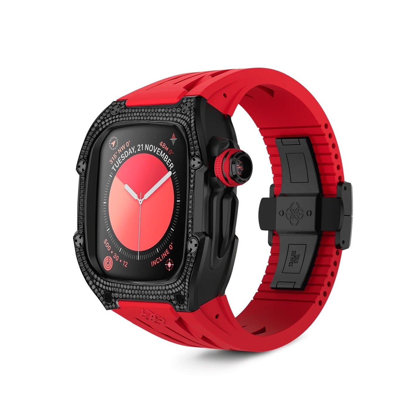 洗練されたスポーティなデザインに、モアサナイトの輝きが加わった人気コレクション「RSCⅢ MD EDITION」。同シリーズはこれまでアップルウォッチウルトラ - 49MM 対応モデルのみの展開でしたが、新たにアップルウォッチ45MM 対応モデルが登場しました。バリエーションは「SNOW FLAKE」と「DIABLO」の2型となっています。