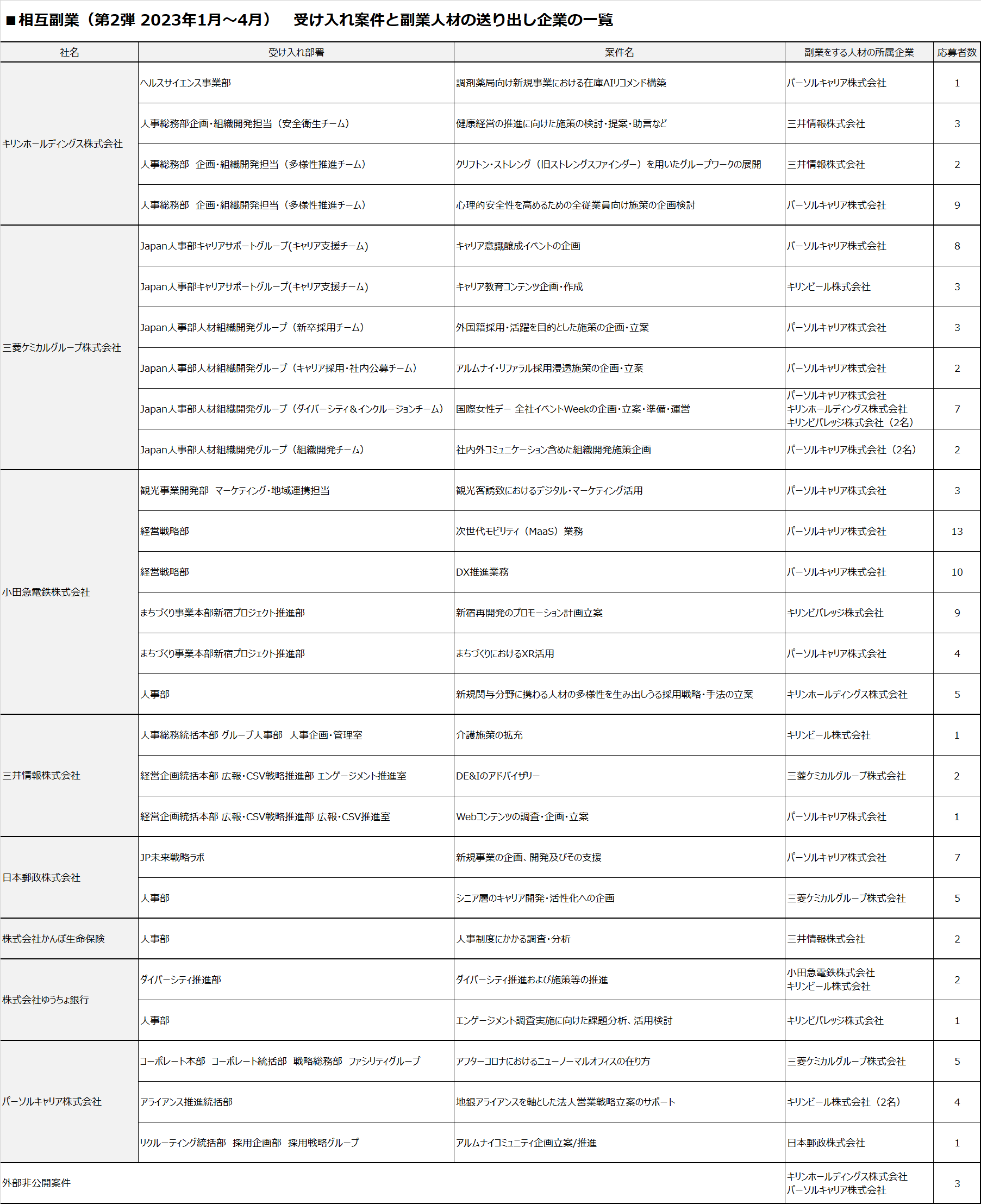 ■相互副業を行う各社案件と副業人材の所属企業の一覧(第2弾 2023年1月~4月)
