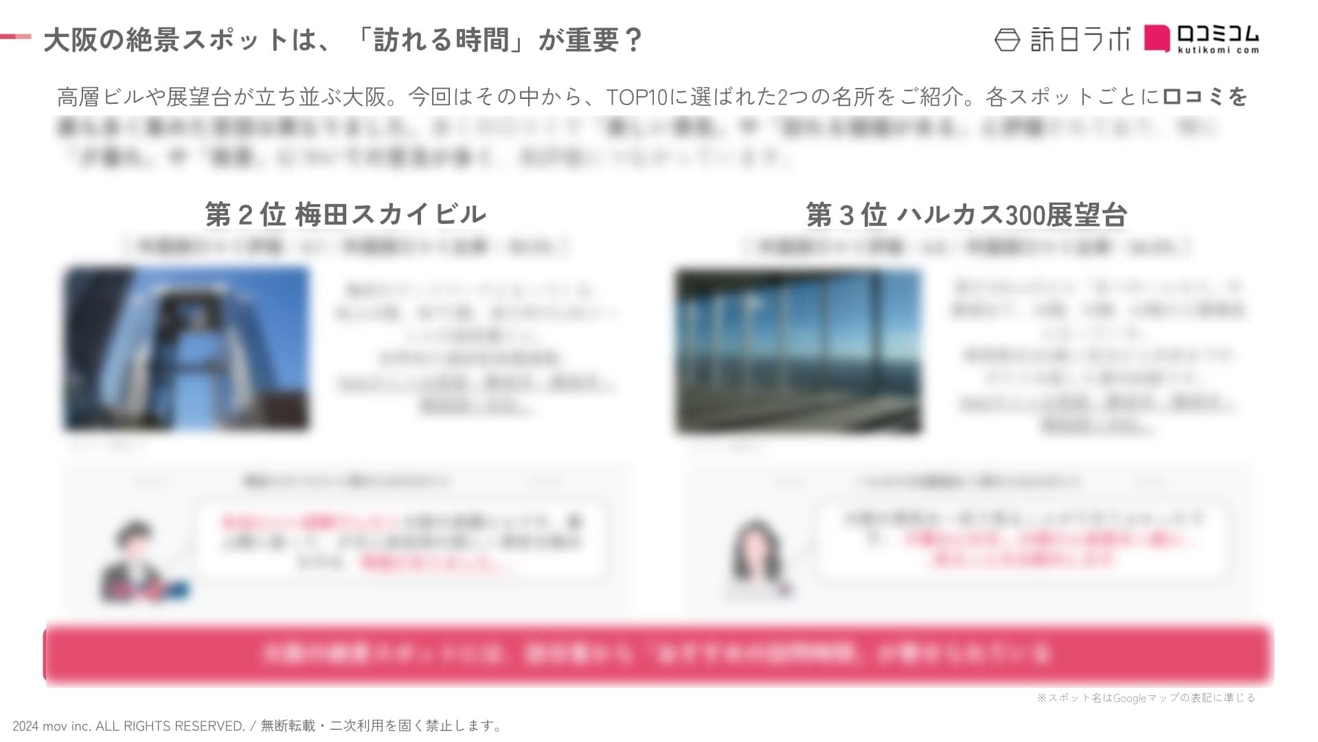 なかでも「梅田スカイビル」「ハルカス300展望台」に寄せられた口コミを分析すると