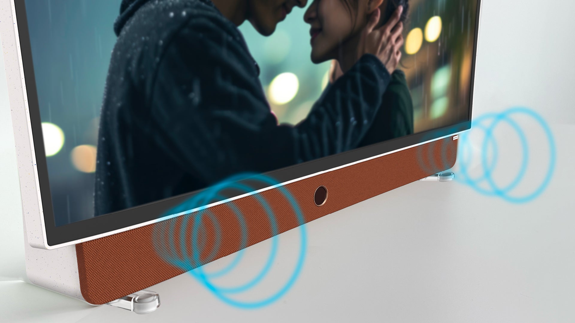 本製品の筐体は、ホワイトを基調としたデザインを採用。また、本体スピーカーを前向きに設置し抜けの良いクリアな音を実現するとともに、スピーカーネットはオレンジカラーを採用。様々なお部屋にマッチするカラーリングに仕上げました。