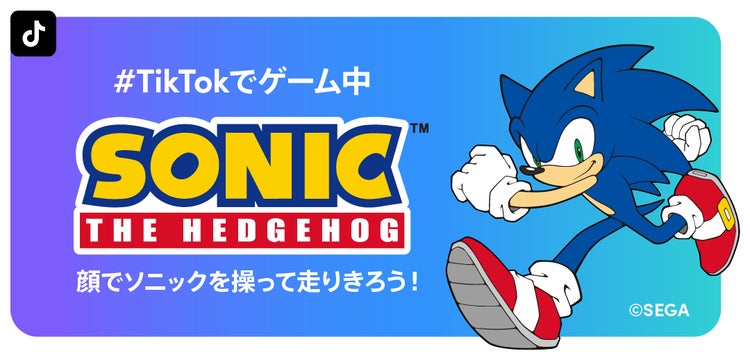 そしてこの度、ソニックシリーズをTikTok流にアレンジした、スペシャルゲームエフェクトを開発いたしました。おなじみの横スクロールで駆け抜けるソニックを、顔で操るゲームです。