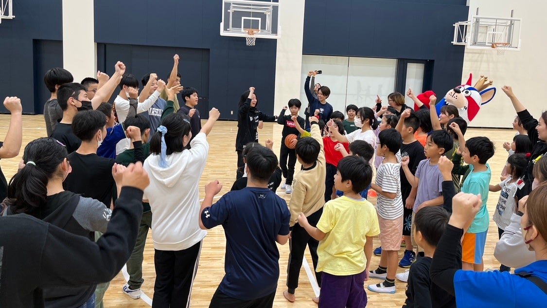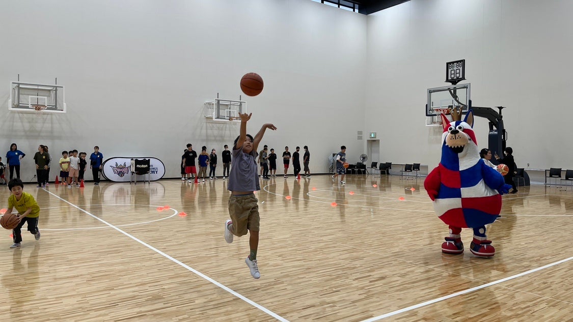 交流会では、沖縄アリーナ株式会社と沖縄スポーツアカデミー株式会社の協力のもと、沖縄アリーナの施設見学を行った後、サブアリーナにてバスケスクールコーチによるチーム対抗のボール遊びやドリブルシュート、ゴーディーとの交流や記念撮影などを行い、沖縄アリーナの魅力と、体を動かすことやバスケットボールの楽しさを体験いただきました。