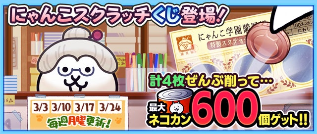 毎週ネコカンGETのチャンス!「にゃんこ学園購買部 特製スクラッチくじ」登場!