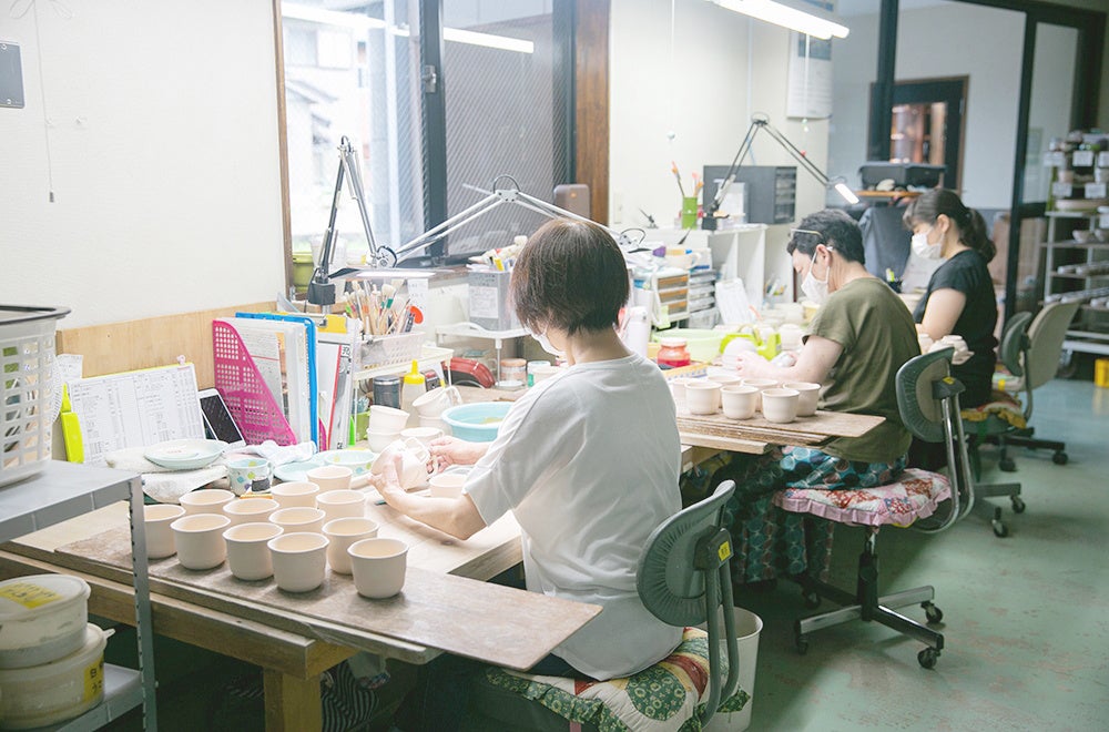 「setoシリーズ」はマリアンヌ本人の監修のもと、彼女のオリジナルの良さを極力残しながらも、お求めやすい価格と耐久性を提供できるよう、日本の工房と共に製造工程をゼロから見直して完成したシリーズです。私たちトンカチ、そしてマリアンヌとの理想的なパートナーとなる窯元は、大正時代から続く、瀬戸焼を代表する窯元のひとつです。
