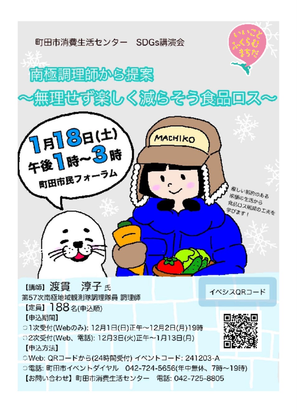 【東京都町田市】消費生活センター講演会「南極調理師から提案~無理せず楽しく減らそう食品ロス~」を開催します!