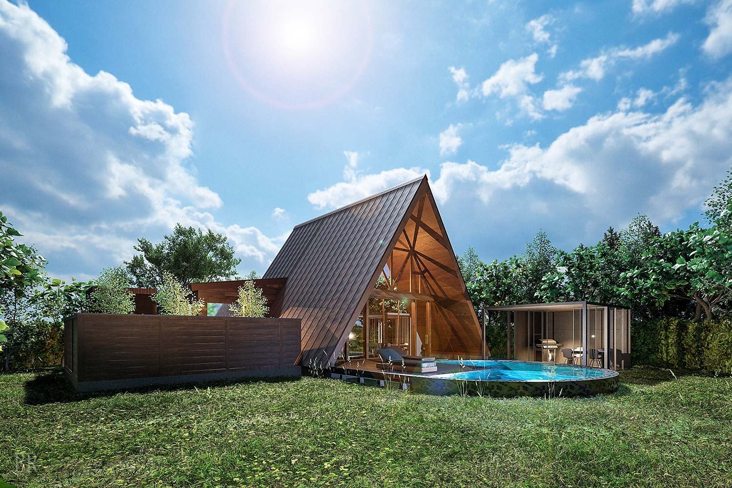 三角屋根の非日常感あふれる開放的なヴィラ。