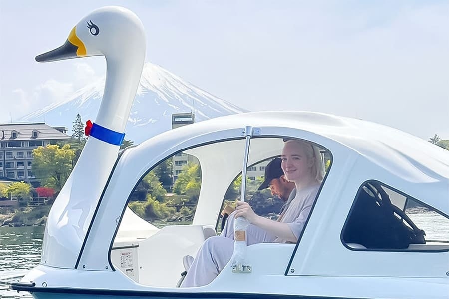 富士のふもとに広がる河口湖エリアでは、「スワンボード体験」や「ワカサギ釣り体験」など様々な湖畔アクテビティ体験をお楽しみいただけます。