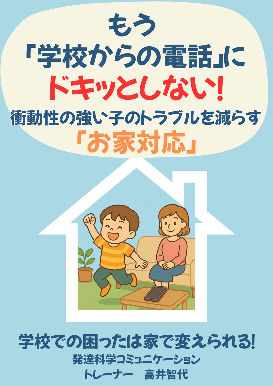 はじめまして 発達科学コミュニケーショントレーナーの高井智代です。衝動性の強い子に行動習慣をつける専門家として活動しています。この度は、衝動性が強い子の学校トラブルをお家で解決していく方法をお伝えする電子書籍をリリースしました。