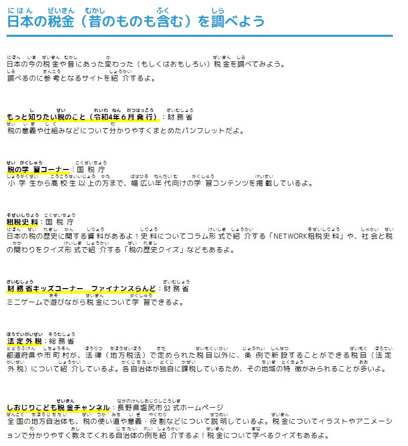 ●「おどろき! 大発見! 知ってためになる☆税金の自由研究」(https://kids.gakken.co.jp/jiyuu/tax/)