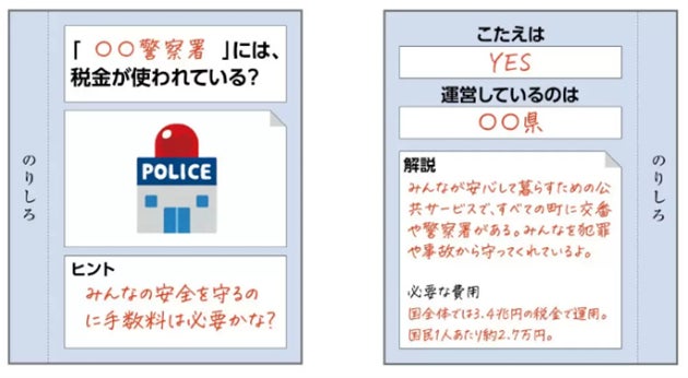 子どもたちが税金との関わりをいちばん感じられるのが公共施設や公共サービス。本テーマは、その公共施設を題材としたもの。ゲームをしながらどんなものが公共施設や公共サービスなのかを調べ、それを参考に、自分の住んでいる地域にある施設やサービスには税金が使われているかを「YES/NOカード」に書き込んでいく工作系の自由研究です。「YES/NO表シート」と「YES/NOカード」は自由にダウンロードでき、完成した「YES/NOカード」はゲームカードとしても活用できます。1日あれば取り組める自由研究で、学校での租税学習の教材としてもピッタリ。