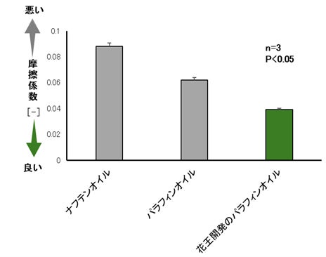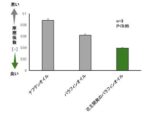 *2 花王の研究所にて、Ball on Disk、Temp. 40℃、Ball Load 50N、SRR 50%、Speed 300mm/sの条件下でMTM(Mini-Traction Machine)で測定。