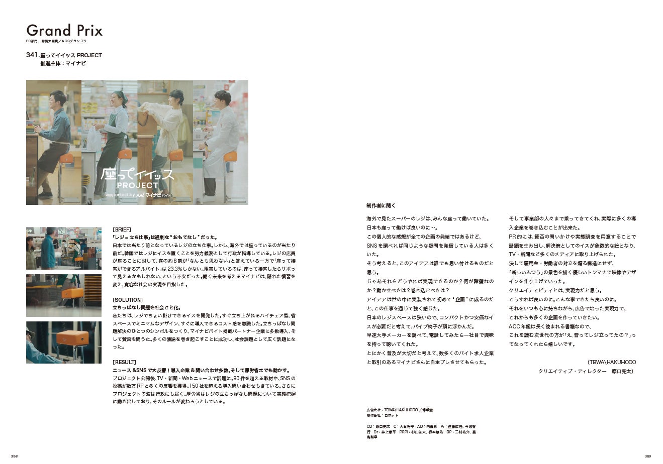 ■入賞したテレビCM、オンラインムービー、ラジオCMのスクリプトとスタッフリスト。