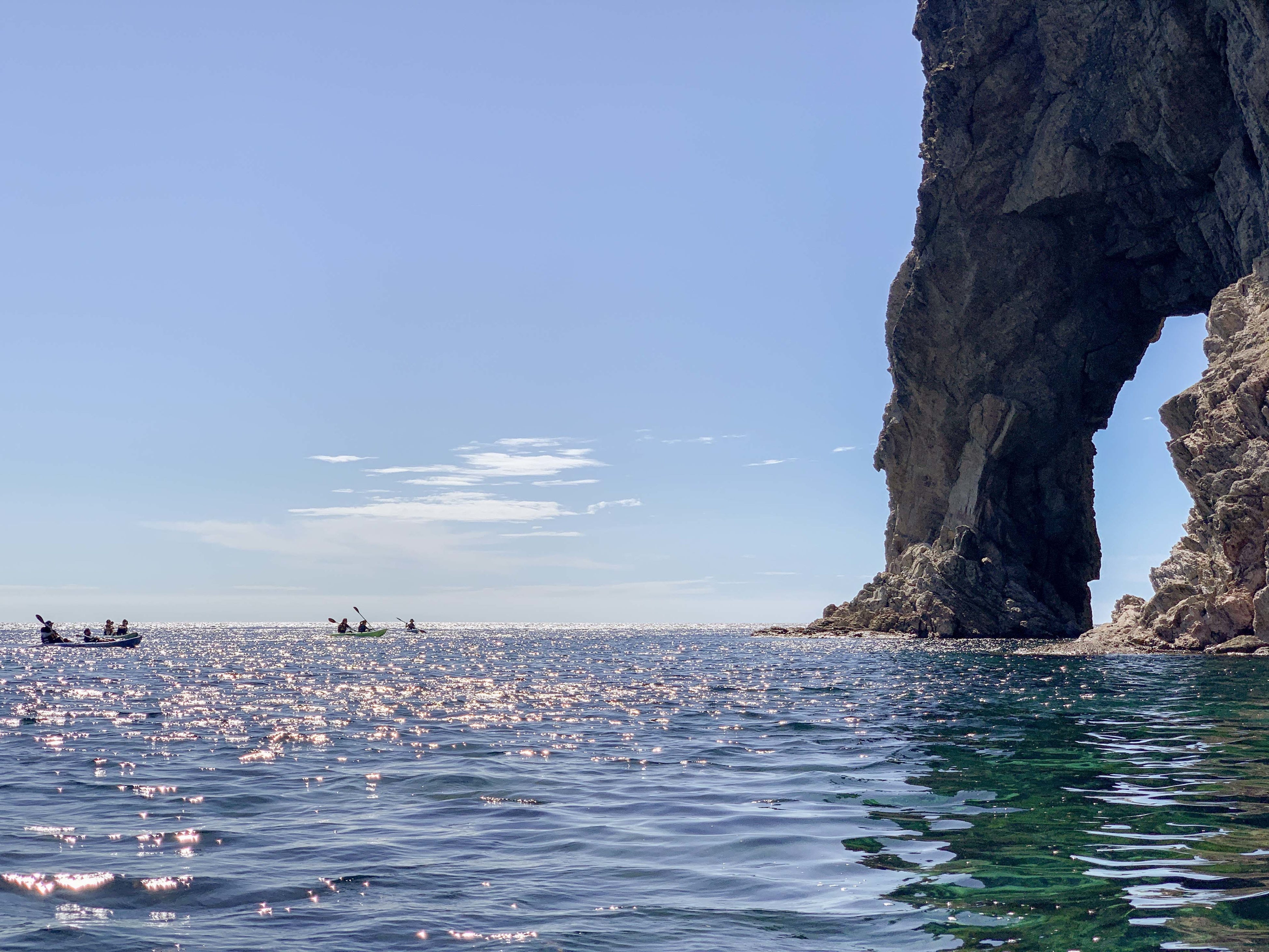 隠岐では、到着日の夜に海岸沿いの砂浜でイベントを開催します。イベントでは隠岐の紹介や辰野のトークショー、約3万年の歴史を持つ黒曜石を矢じりに使用した復元の古代弓の実射をご覧いただけます。また、隠岐の自然を体感できるトレッキングやシーカヤック、クルージングに加え、観光地や景勝地を楽しめる島内バス観光もオプショナルプランでご用意しています。