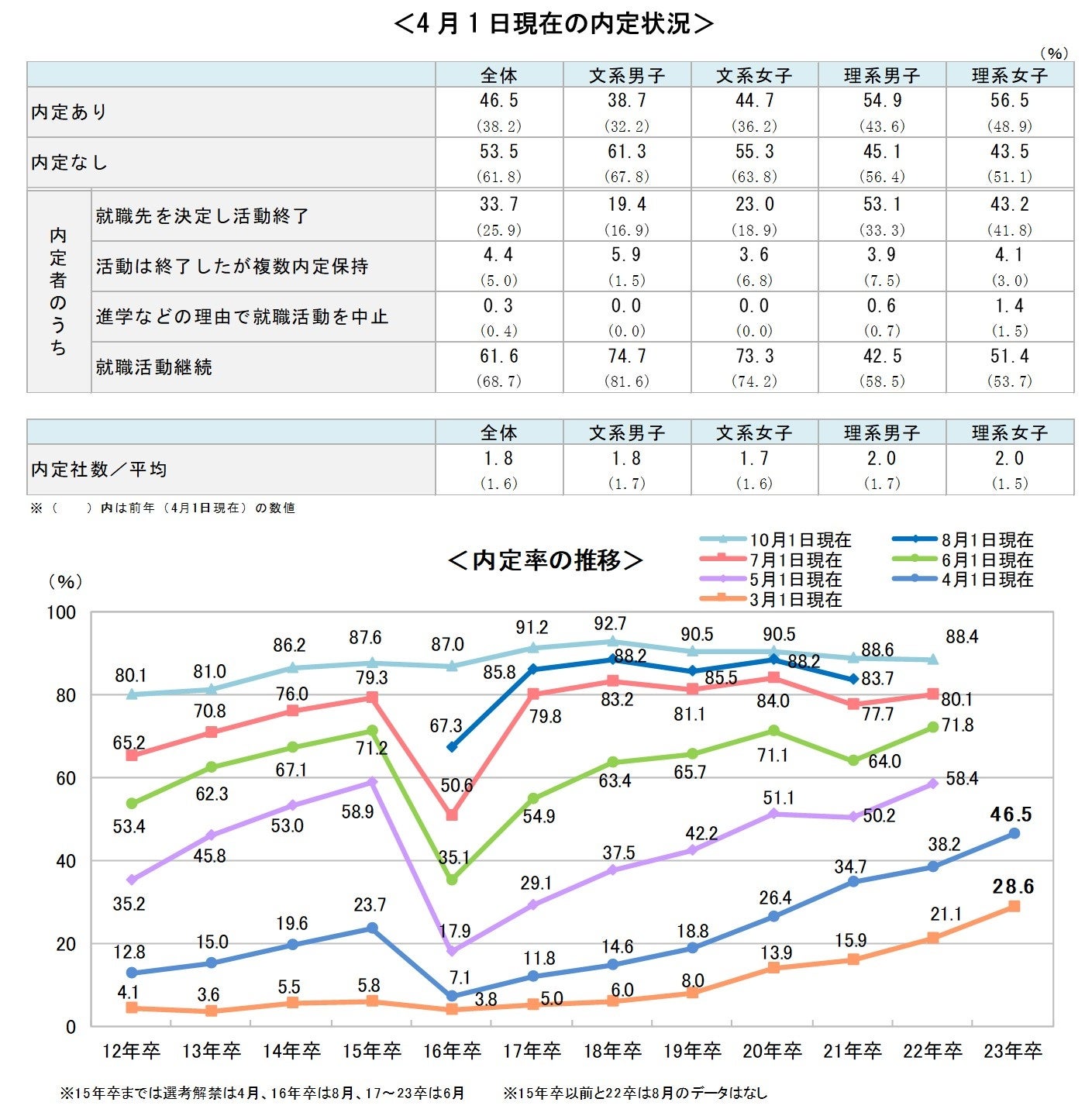 調査対象 : 2023年3月に卒業予定の大学4年生(理系は大学院修士課程2年生含む)