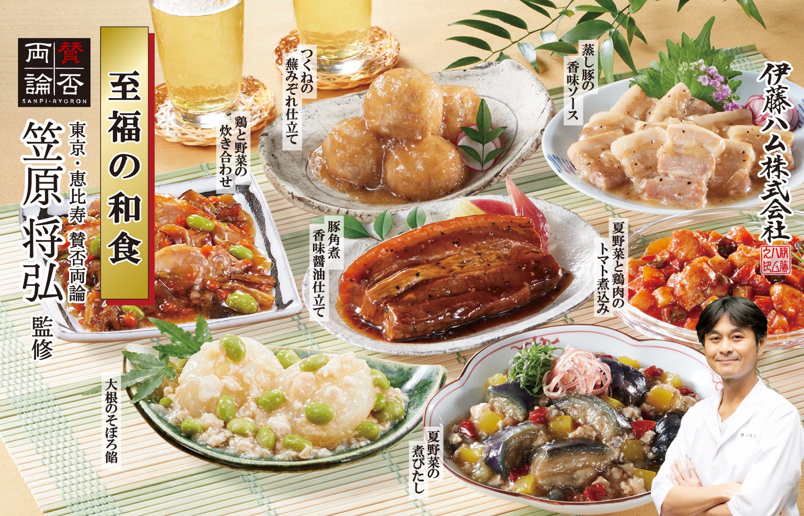 日本料理の名手笠原将弘さんとともに、おいしさ・香り・食感にこだわった和惣菜をお届けします。2023年夏は季節限定メニューとして、夏野菜を使った商品を発売します。