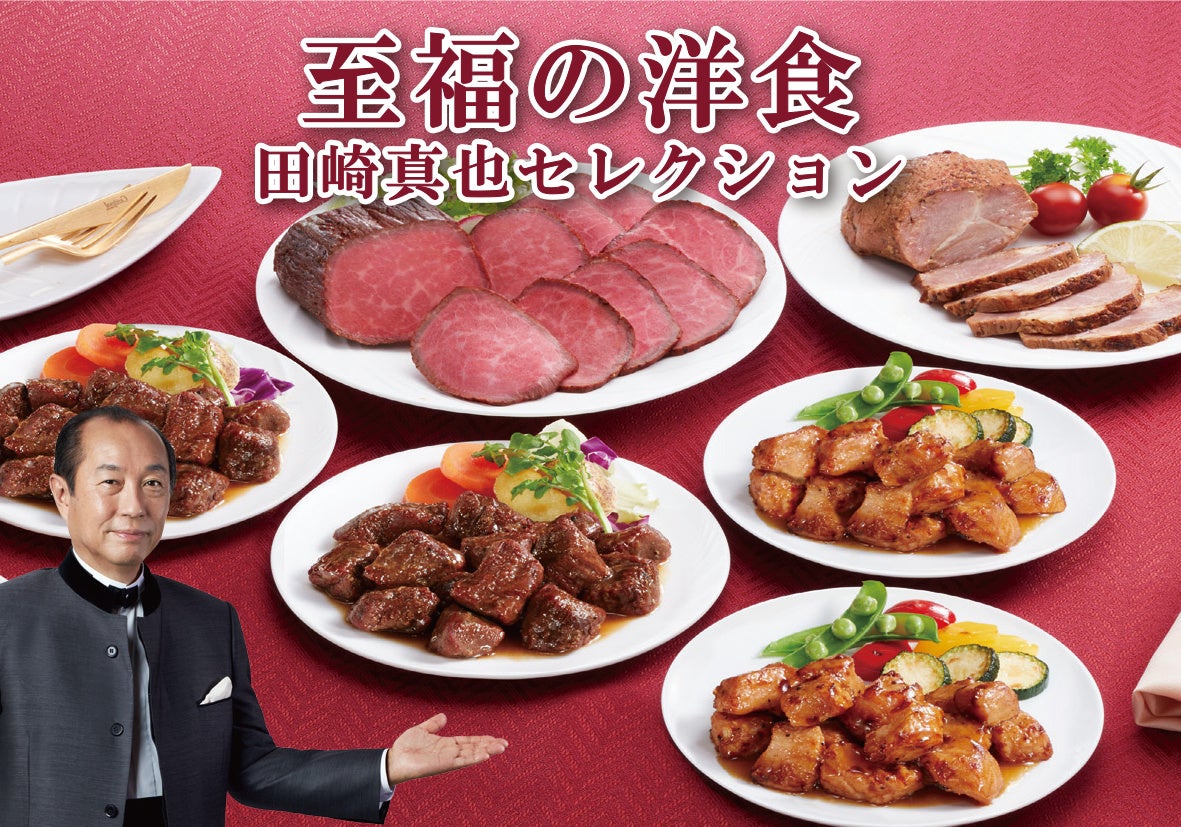 食のプロ、田崎真也さんとともに、ご家族皆様でお楽しみいただける洋食をお届けします。豚肉のロースト、オリーブオイル煮など低温真空調理製法のラインアップも拡充しています。