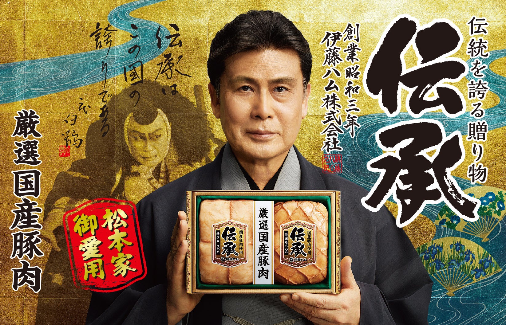 「伝承」については、引き続き「伝統を伝承している」ということを体現されている歌舞伎役者「二代目松本白鸚」氏をイメージキャラクターに起用し、“大切な方への贈り物”にふさわしい「魅力あるギフト」であることをお伝えしていきます。創業90余年にわたる弊社の「伝統」、「歴史」、「ハムづくりの想い」、さらには、実際に松本白鸚さんが当商品を愛用(松本家御愛用)しているという強い事実を肉付けして、『伝統を誇るこの国の特選ハム「伝承」』という価値を訴求していきます。