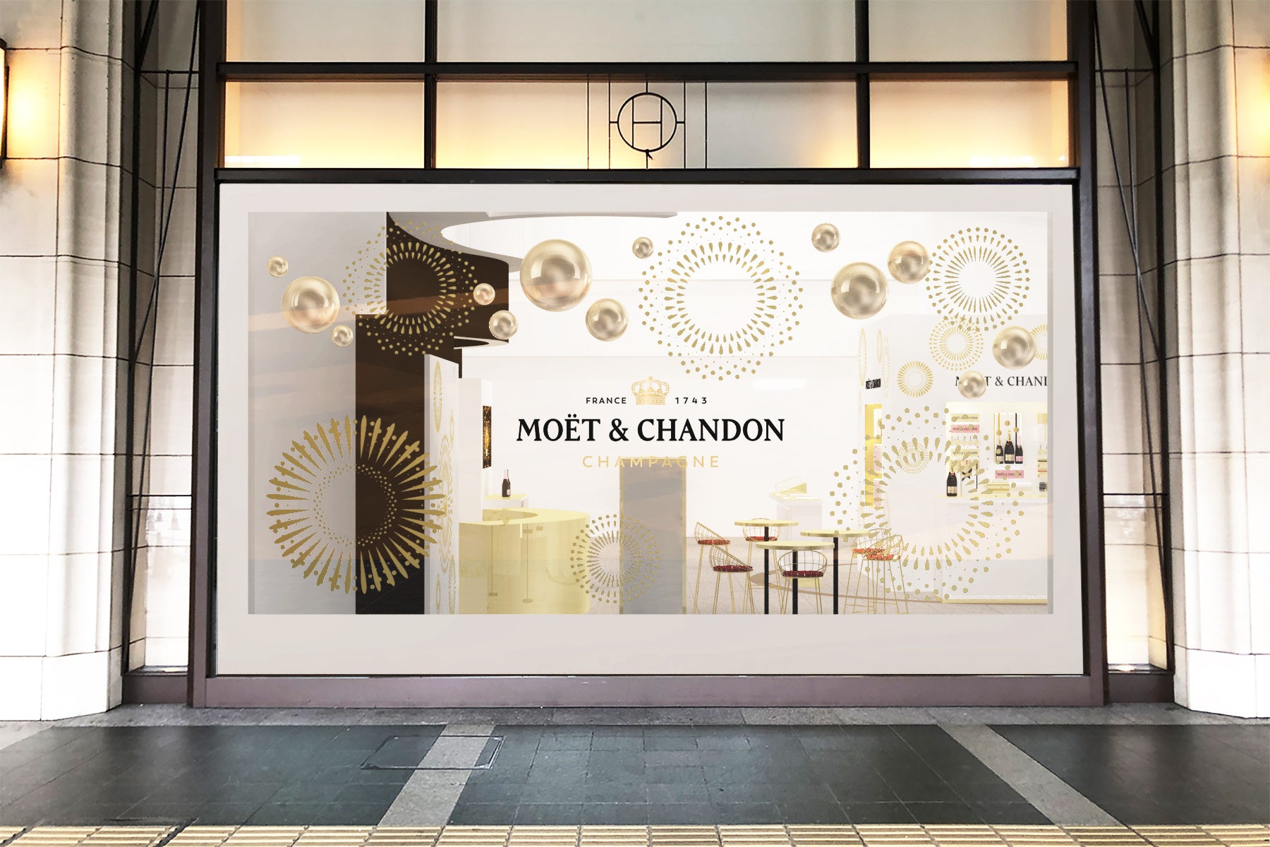 立ちのぼる泡がグラスの中で花火が弾けるように煌めく、シャンパンの魔法にかけられたような世界を表現した「モエ・エ・ シャンドン “Effervescence – エフェルヴェソンス” ラグジュアリーストア 」