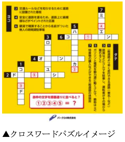 クルマをテーマにしたクロスワードパズルを出題します。ご回答いただき、正解した方の中から抽選で10名様に「タイムズパーキング」のガチャまたはトミカのいずれかをプレゼントします