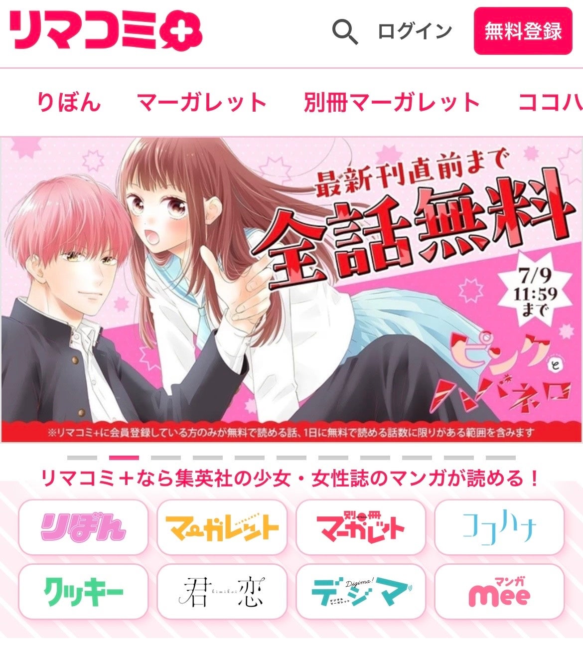 集英社の少女・女性向けまんがポータルサイト「リマコミ+」(リマコミプラス)が、2024年6月25日(火)にオープンしました。「りぼん」「マーガレット」「別冊マーガレット」「ココハナ」「クッキー」「君恋」「デジタルマーガレット」「マンガMee」8誌の連載や最新の読みきりを公開する、少女・女性向けまんが作品の総合配信サイトです。無料まんがを随時更新するほか、各誌で連載中の作品の最新話も雑誌発売日当日に配信するのが特長。