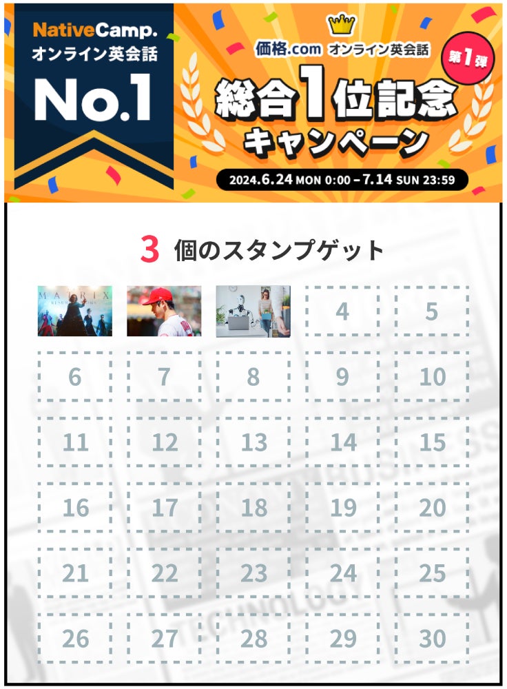 ■価格.comオンライン英会話 総合1位記念キャンペーン 第1弾