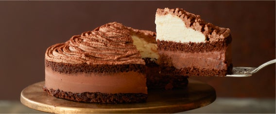 見た目は「ショコラケーキの山」のようなビジュアルで、インパクトがあり美味しさが積みあがった特別なバレンタインショコラケーキです。