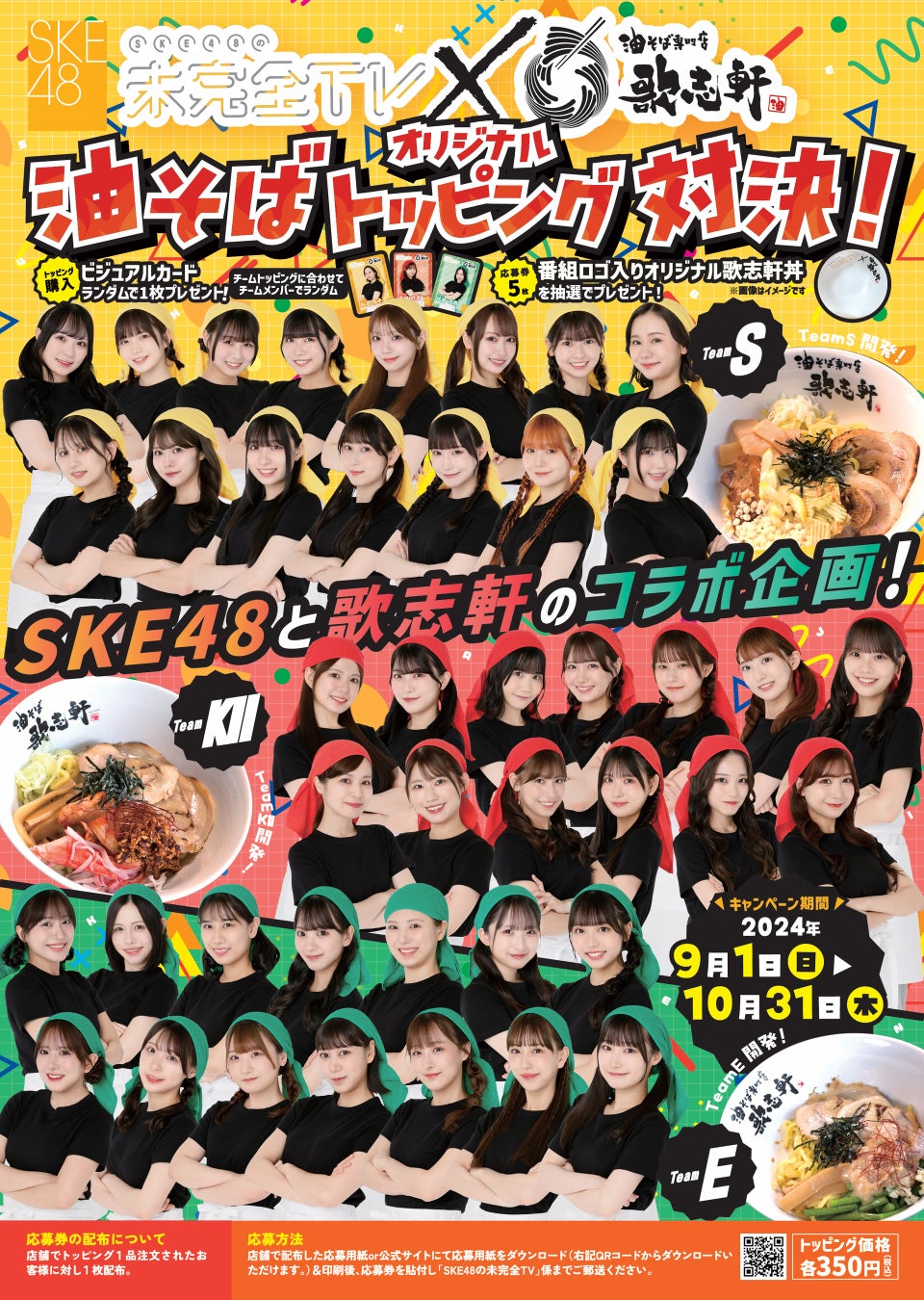 テレビ愛知「SKE48の未完全TV」と「油そば専門店 歌志軒」がコラボ!オリジナルトッピングの特典に限定のビジュアルカードを配布