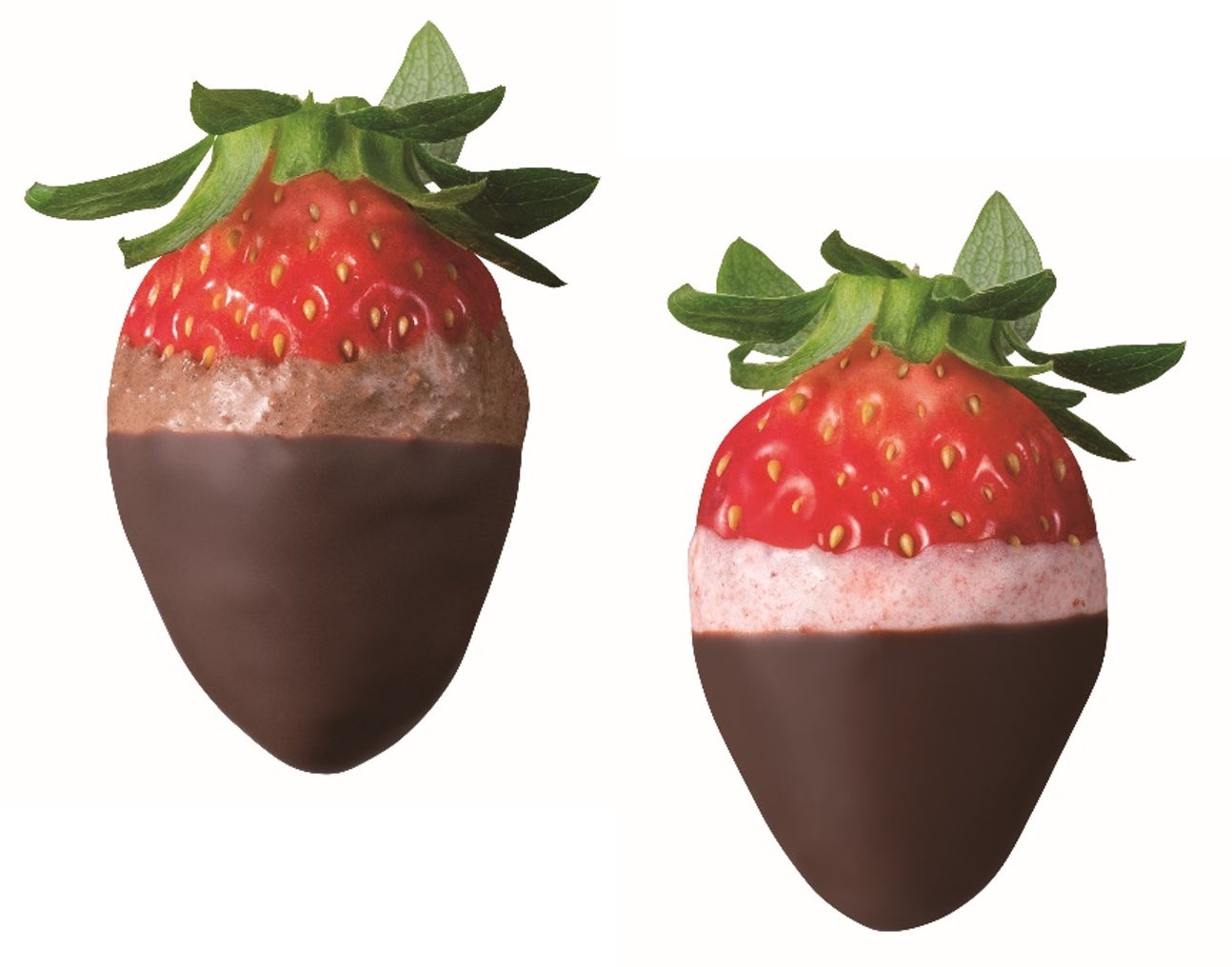 いちごの人気品種「とちおとめ」を軽い食感のムースでコーティングし、さらに上からダークチョコレートをまとわせた二重コ-ティングのストロベリーディップです。
