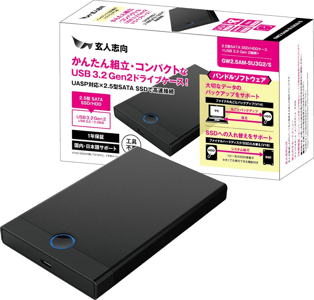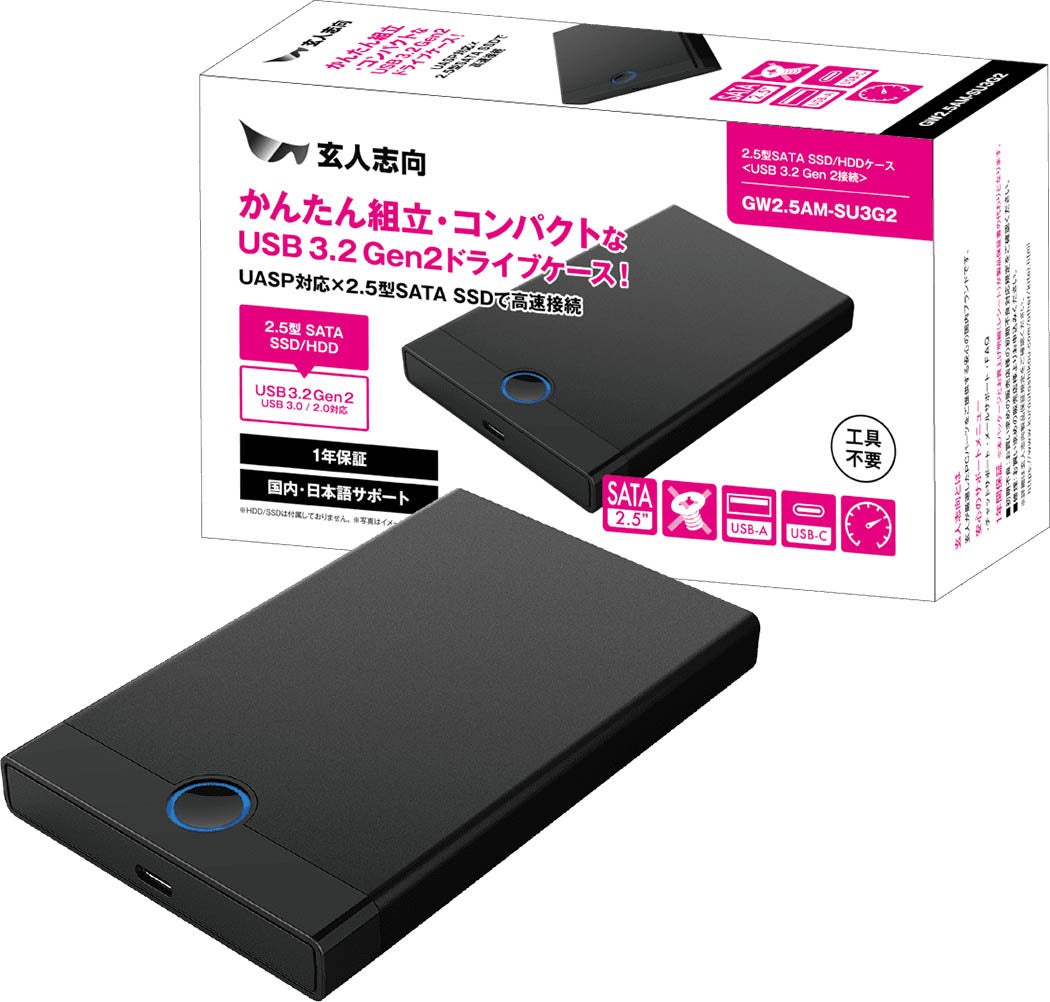 PCパーツブランド 玄人志向 から、ツールレスで組み立て可能な外付け2.5型SSD/HDDケース「GW2.5AM-SU3G2シリーズ」を発売