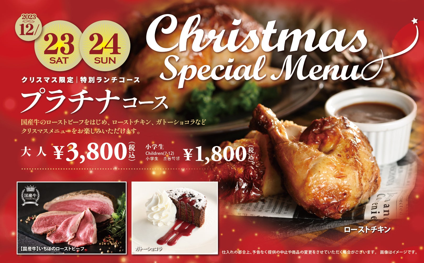 更に!『プラチナコース』では、希少部位!国産牛イチボの『ローストビーフ』や、クリスマスの定番メニューの『ローストチキン』が登場!