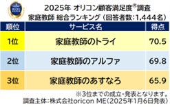 –保護者1,444人が対象- 満足度の高い『家庭教師』ランキング┃【家庭教師のトライ】が2度目の総合1位(オリコン顧客満足度調査)