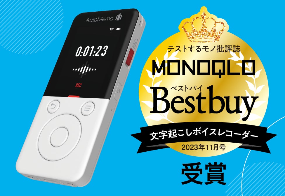 AIボイスレコーダー「AutoMemo R」が「MONOQLO」ベストバイを受賞 https://automemo.com/