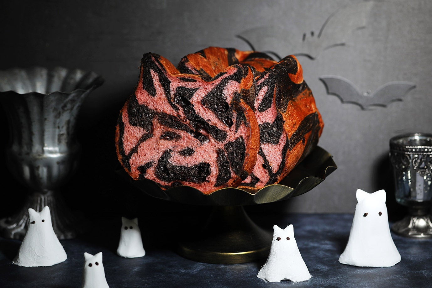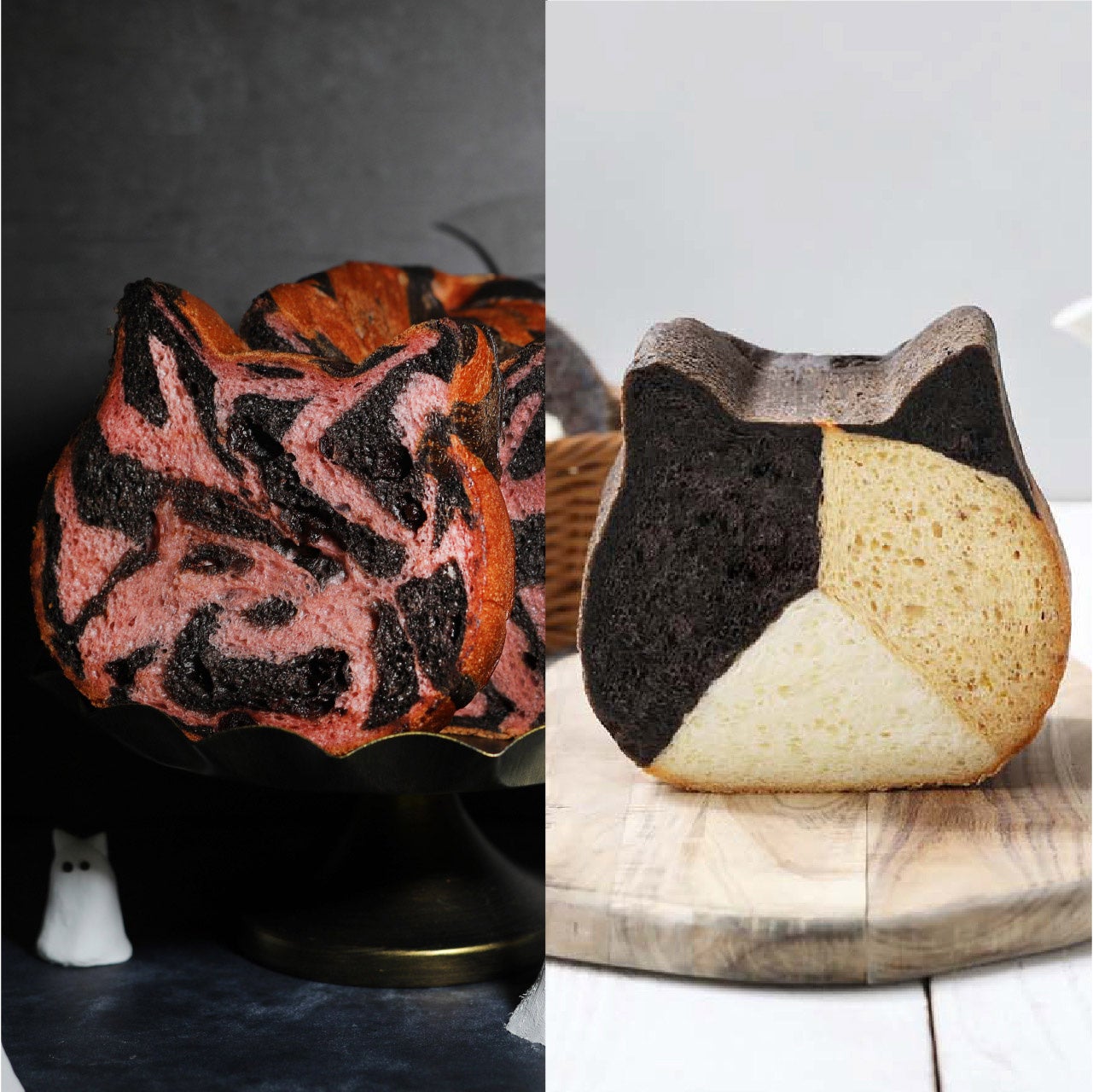 切っても切ってもダークな模様が現れる「ねこねこ食パン ハロウィン」。SNSや写真映えもお楽しみいただける当商品は、味わいにもご注目いただきたい商品です。