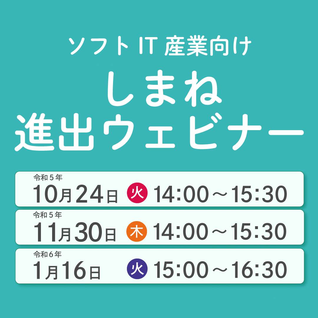 ソフトIT産業向けしまね進出ウェビナー運営事務局(県委託事業) TEL(0854)47-7716