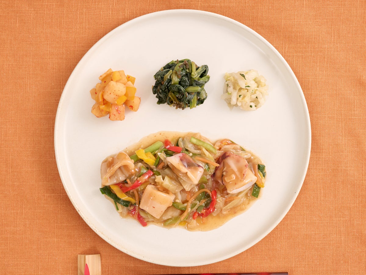 野菜不足を感じる方におすすめ!低カロリーでも食べ応え抜群の「半日分の野菜とイカのXO醤仕立て」を1月7日(火)から新発売