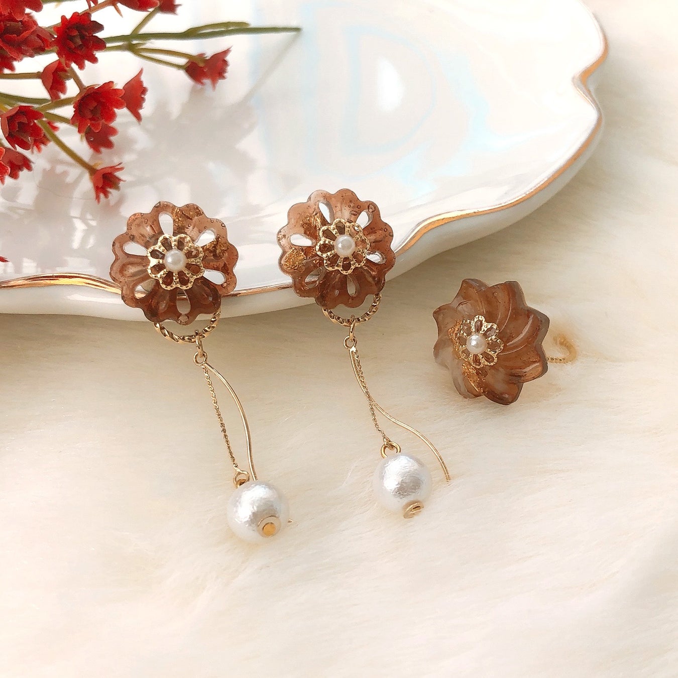 座金にフラワーパーツを編みつけて簡単におつくり頂けるイヤリングです♪
