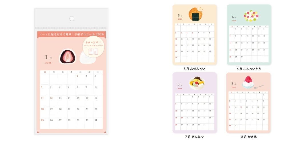ノートにデコレーション感覚で貼って使える弱粘着糊のマンスリーデコシール。A6サイズ以上のノートに貼付け可能で、シールの上から書き込み出来ます。好きなノートに貼って、フレークシールやマスキングでデコレーションすれば簡単にオリジナル手帳が完成します。