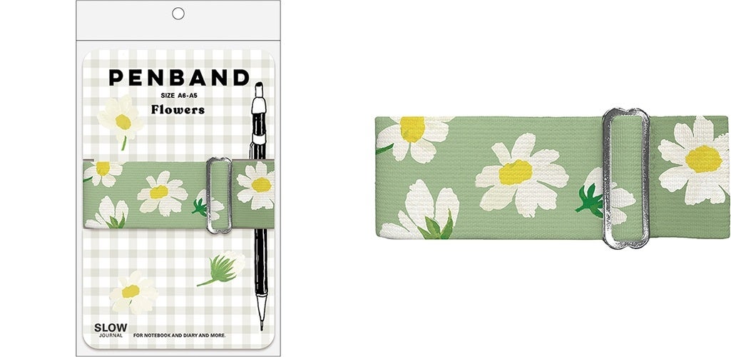 ダイアリーとペンをセットで持ち運べるペンバンドです。日記やノートを束ねられます。太めのゴム素材でペンをしっかり固定。アジャスター付きでA6からA5まで、長さの調節が可能となります。